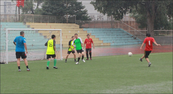 8月12日,本届足球联赛复赛阶段5678名次确定的比赛在交通大学球场继续进行。