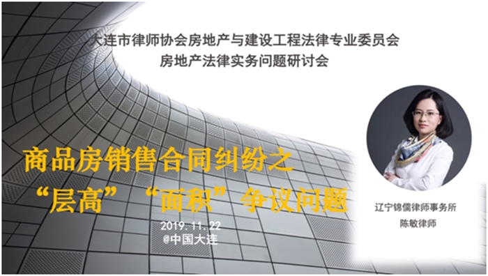 市律师协会房地产与建设工程法律专业委员会主任、辽宁锦儒律师事务所陈敏律师做《商品房销售合同纠纷之“层高”“面积”争议问题研讨》主题发言。陈律师以大数据检索开篇,让参会人员从直观上了解有关“商品房销售合同纠纷的“层高”“面积”争议问题在全国发生的情况,以辽宁省沈阳市、大连市以及其他省市相关案例与参会人员进行交流讨论,结合案例,直击争议焦点,对本问题分析全面,受到参会人员的一致好评。
