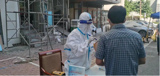 9月7日,辽宁双护律师事务所姜洪涛律师在中华路街道锦园社区做志愿服务,负责扫码、协助医护人员做核酸检测。