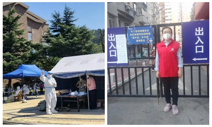 辽宁青松律师事务所孙孝宸律师在中山区桃源街道高尚社区提供志愿服务,全天负责小区内分发试剂盒,给封控楼搬运物资;9月9日晚6点至9点,钟美娜律师在西岗北京街万达高层提供志愿服务,负责小区门口卡点封控工作。