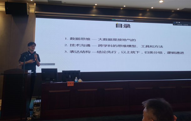 大连理工大学张颖异博士以《新形势下大数据应用》为题,向参训人员讲解数据思维与技术沟通,为我市法律职业共同体的技术化办案和信息化建设提供参考。
